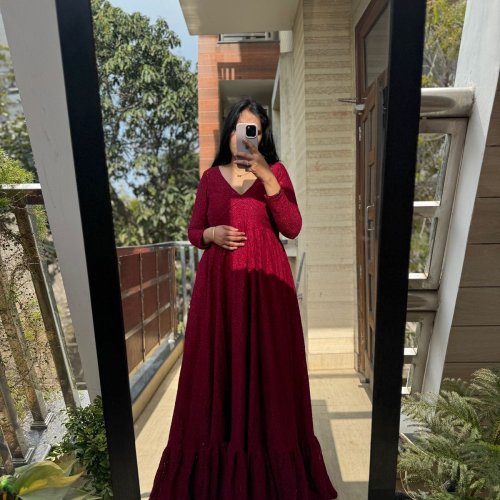 Maroon Cotton Long Maxi Gown
